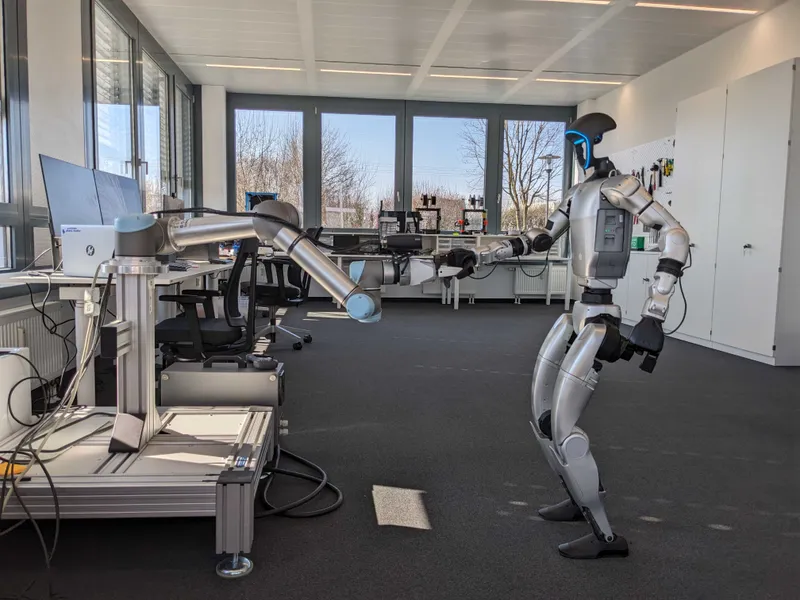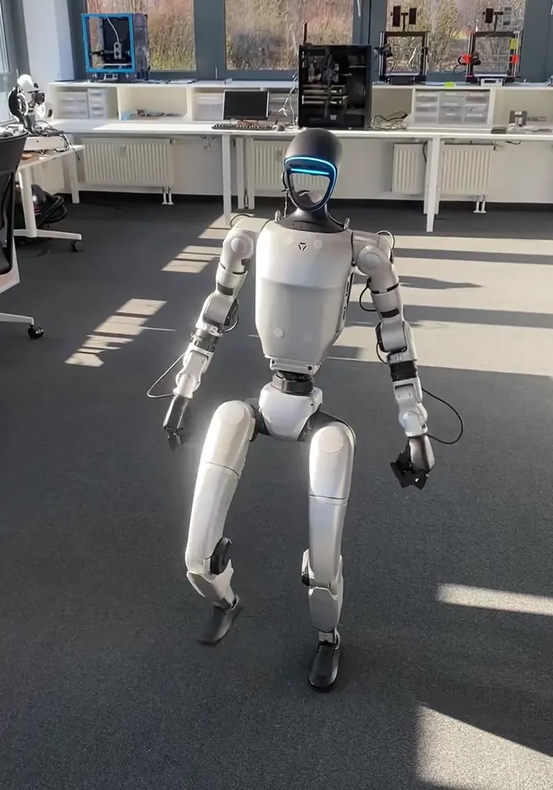 April 4th, 2025Hello from the newest member of the TNG team 🤖 This is our Unitree G1 Robot “G1PO”. Powered by 43 joint motors, it navigates around the office at a speed of 2 m/s using LiDAR sensors, and can interact with our team through its force-controlled dexterous hands. Driven by Artificial Intelligence such as imitation and reinforcement learning, its technology will constantly evolve. "G1PO" is currently familiarizing himself with our office and already making friends with our robotic arm.