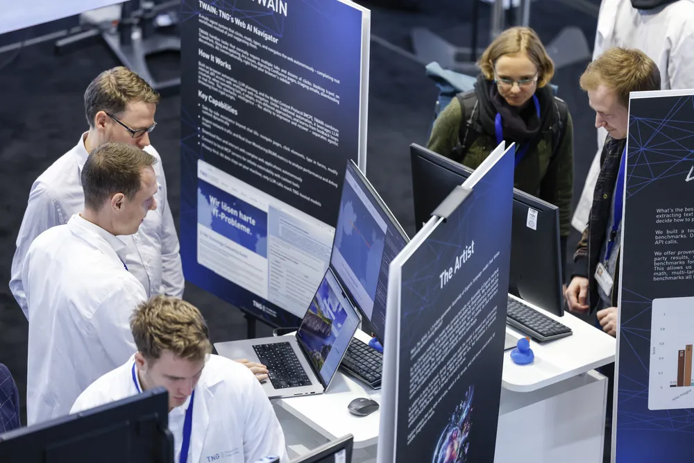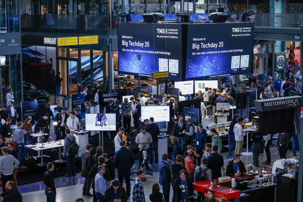 24. Oktober 2025Der Big Techday 25 bietet neben Vorträgen von internationalen Speakern auch eine Ausstellung, die neueste KI-Entwicklungen demonstriert. Unsere Gäste können heute mit unserem humanoiden Roboter G1PO interagieren, von TNG-entwickelte Tools zur KI-gestützten Code-Migration sowie Atlassian-Apps testen und mit unserer Schach-KI ihre Schachfähigkeiten trainieren. Unsere Kolleginnen und Kollegen stehen für Fragen und kurze Demos gerne bereit. Eine Übersicht aller Exponate finden Sie hier.