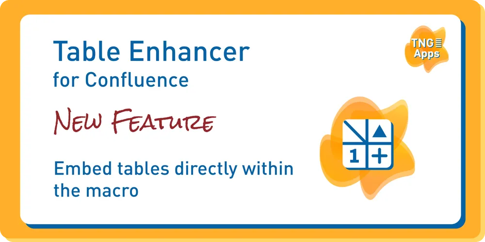 21. August 2025Unser Atlassian Apps Team hat eine neue Funktion der App "Table Enhancer for Confluence" veröffentlicht: Ab jetzt können Sie Tabellen direkt innerhalb des Makros einbetten, was die Notwendigkeit externer Verweise beseitigt.