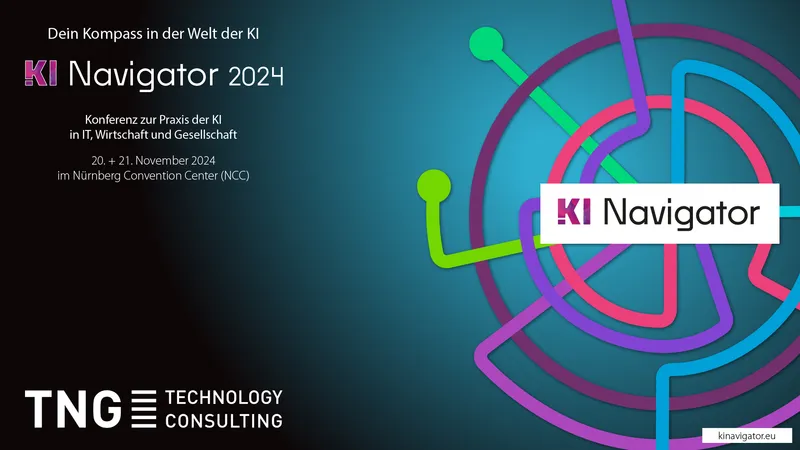 KI-Entertainment, ein spannender Vortrag und zahlreiche Showcases – all das bringen wir mit zum KI Navigator 2024. Die Konferenz findet zwischen dem 20. und 21. November in Nürnberg statt. Dort stellt das TNG Innovation Hacking Team unsere praktischen AI Productivity Tools sowie den Slide-Deck-Generator AI Slides vor. Außerdem bieten unsere Kollegen Thomas Endres und Martin Förtsch eine Session AI PowerPoint Karaoke an. Neben diesen interaktiven Showcases gibt es auch noch einen praxisnahen Vortrag von Marc Schuh zum Thema „From Athlete to Algorithm: Transforming Canoe Technique Analysis with AI".